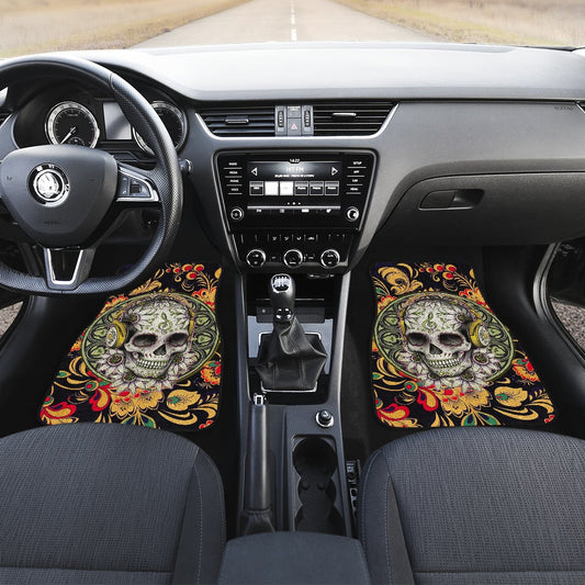 Mandala Skull Wearing Headphones Orange Artwork Car Mats