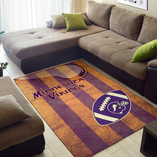 Minnesota Vikings American Football Team Area Rug Rugby Ball On Flag With Viking Horn Adrian Peterson Rugs Home Decor