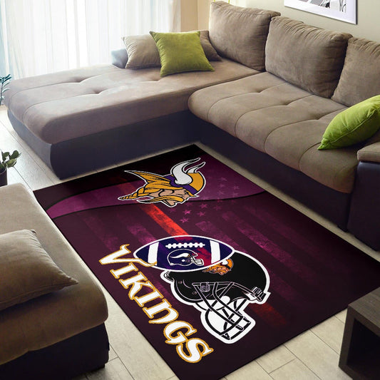 Minnesota Vikings American Football Team Area Rug Viking Head Rugby Ball And Black Helmet Symbol Rugs Home Decor