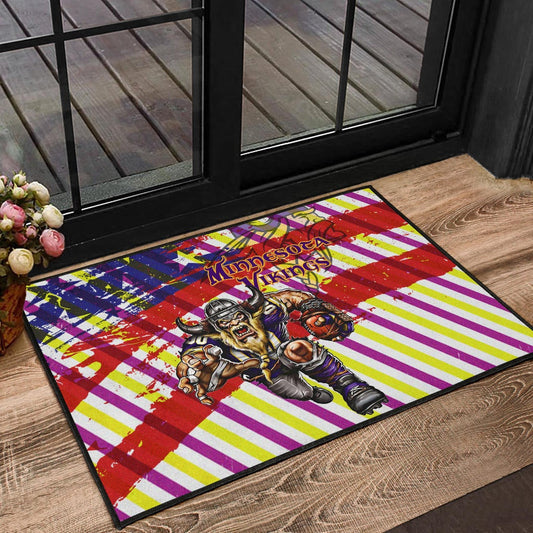 Minnesota Vikings American Football Team Door Mat Giant Viking Holding Rugby Running On Painting Flag Door Mat Home Decor
