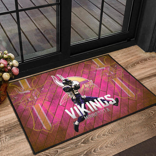 Minnesota Vikings American Football Team Door Mat Giant Viking Holding Rugby Running Pink Purple Door Mat Home Decor