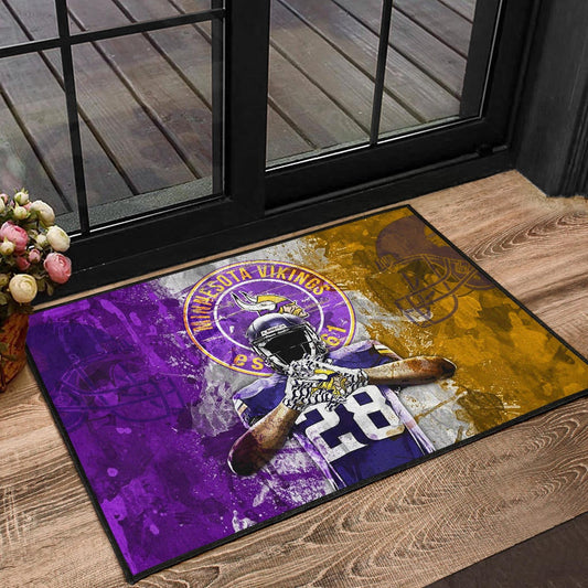 Minnesota Vikings American Football Team Door Mat Rugby Ball On Flag With Viking Horn Adrian Peterson Door Mat Home Decor