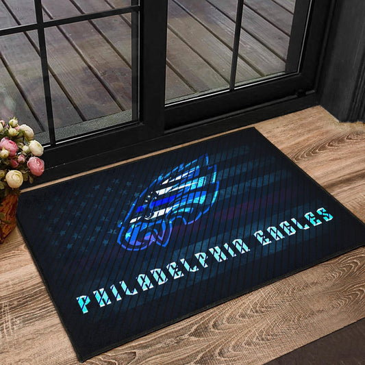 Philadelphia Eagles American Football Team Door Mat Eagle Head On The Shield Black And Blue Lines Door Mat Home Decor
