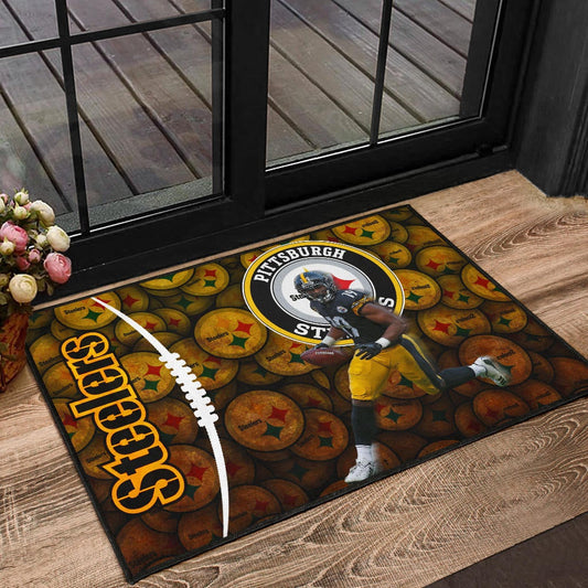 Pittsburgh Steelers American Football JuJu Smith-Schuster 19 Running Minimal Helmet Door Mat Home Decor