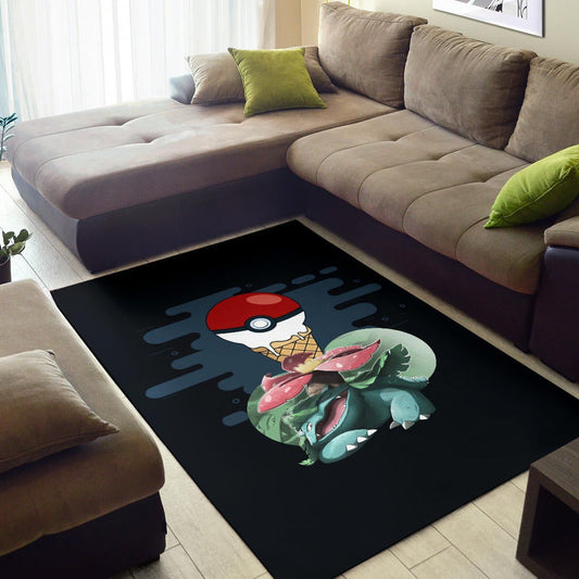 Pokemon Anime Area Rug Ice Cream Pokeball Melting Funny Venusaur Rugs Home Decor