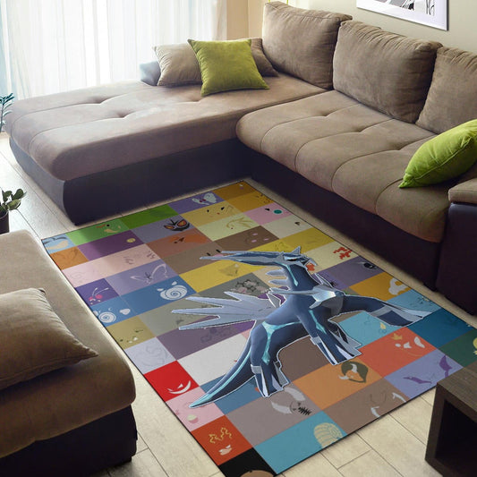 Pokemon Anime Area Rug - Legendary Mega Dialga Cute Minimalist Pokemon Face Rugs Home Decor