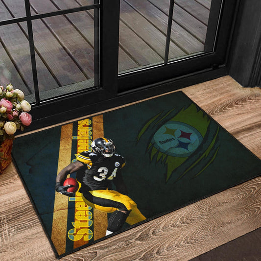 Pittsburgh Steelers American Football Terrell Edmunds 34 Hiding Rugby Ball Running Door Mat Home Decor