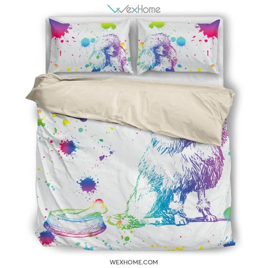 Poodle Watercolor White Background Bedding Set