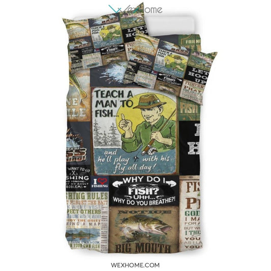 Quilt Fishing Bedding - Duvet Cover And Pillowcase Set - Unique Design Amazing Gift