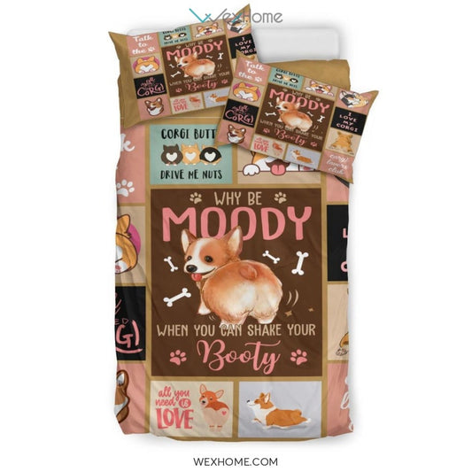 Quilt Corgi Why Be Moody When You Can Shake Your Booty Bedding - Duvet Cover And Pillowcase Set - Unique Design Amazing Gift