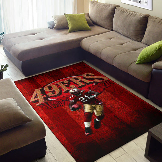 San Francisco American Football 49ers Football Player 21 With Wings Holding Rugby Ball Area Rug Home Decor
