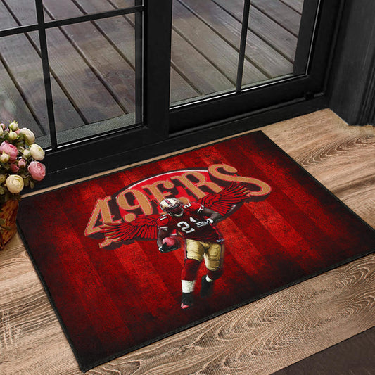 San Francisco American Football 49ers Football Player 21 With Wings Holding Rugby Ball Door Mat Home Decor