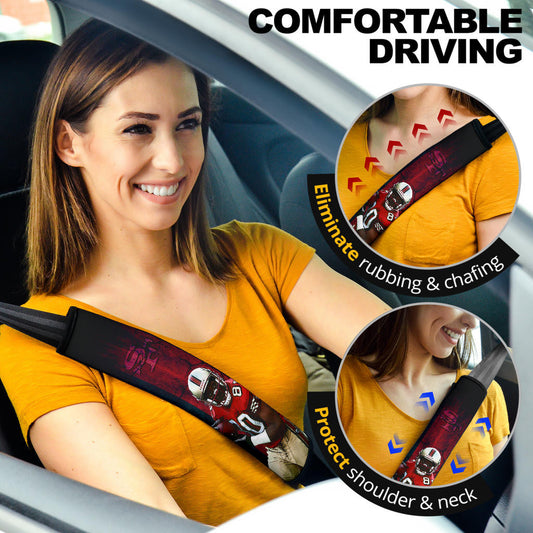 San Francisco American Football 49ers Football Player 80 Holding Ball Black And Red SF Ers Seat Belt Covers