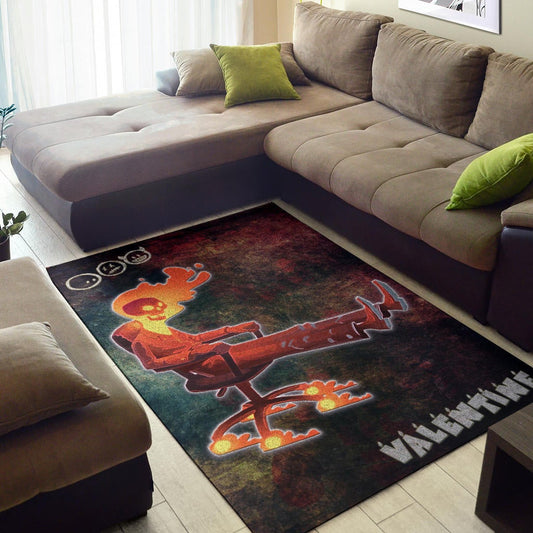 Skull Area Rug - Skeleton With Fire Head On Chair Valentine Text Candle Rugs Home Decor