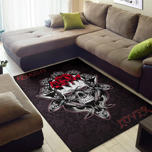Skull Area Rug - Knight Lover Broken Skull With Rose Artwork Rugs Home Decor