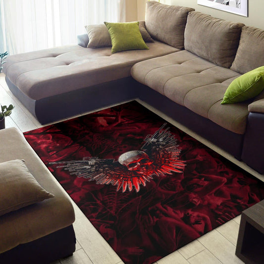 Skull Area Rug - Powerful Skull With Wings And Red Victim Souls Rugs Home Decor