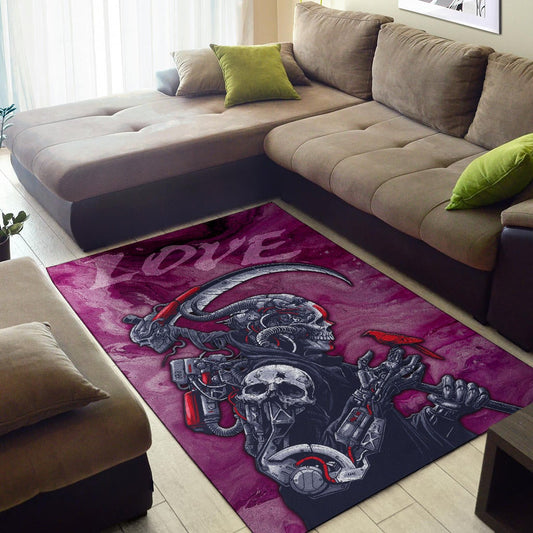Skull Area Rug - Machine Cyborg Skull Death Reaper In Love Rugs Home Decor