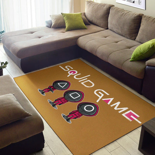 Squid Game Movie Area Rug - Cute Chibi Squid Workers Round Square Triangle Face Rugs Home Decor