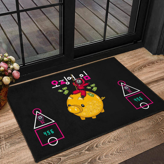 Squid Game Movie Door Mat - Squid Worker Swing Golden Pig Wrecking Ball Door Mat Home Decor