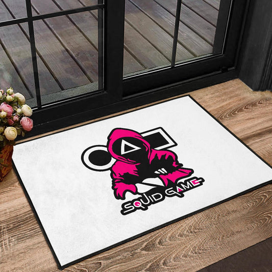 Squid Game Movie Door Mat Cold Triangle Squid Worker Portrait Artwork White Door Mat Home Decor