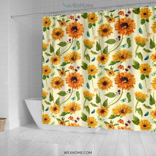 Sunflower Art Print Unique Design Shower Curtain