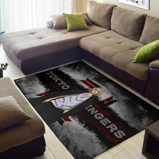 Tokyo Revengers Anime Cool Mikey Gang Shadow Red Black Theme Area Rug Home Decor