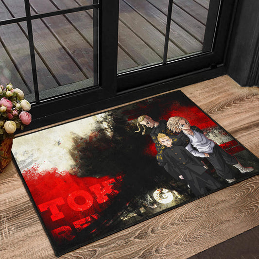 Tokyo Revengers Anime Mikey And Grey Hair Mate Dark Red Door Mat Home Decor