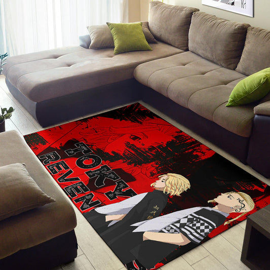 Tokyo Revengers Anime Mikey And Draken Together Red Theme Area Rug Home Decor