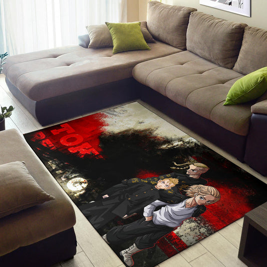 Tokyo Revengers Anime Mikey Brothers Uniform Red Black Watercolor Area Rug Home Decor