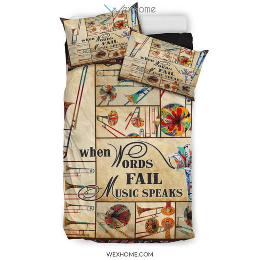 Trombone When Words Fail Music Speaks Quilt Bedding - Duvet Cover And Pillowcase Set - Unique Design Amazing Gift