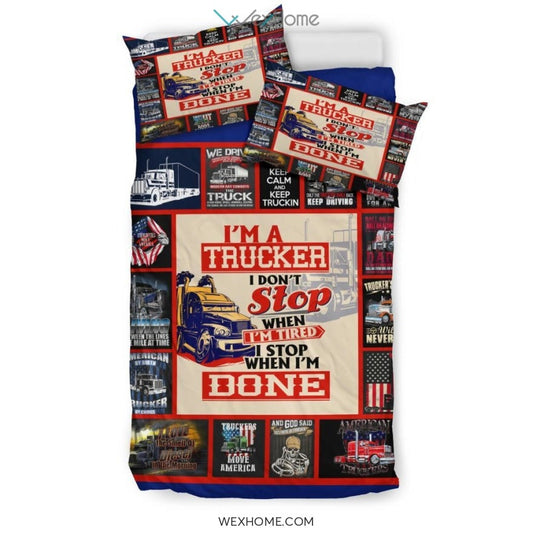 Trucker Driver Quilt Bedding - Duvet Cover And Pillowcase Set - Unique Design Amazing Gift