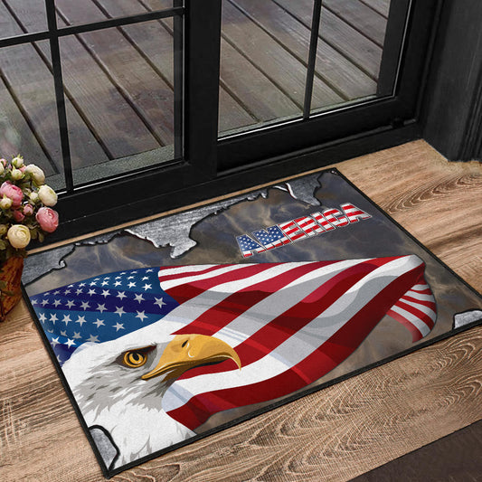 US Independence Day Minimal Eagle Head With US Flag Door Mat Home Decor