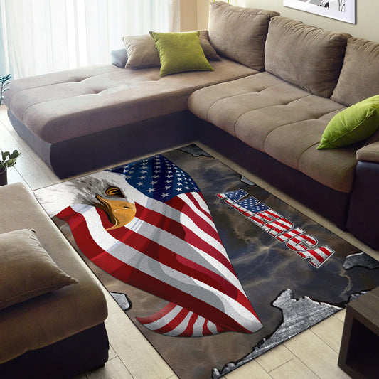 US Independence Day Minimal Eagle Head With US Flag Area Rug Home Decor