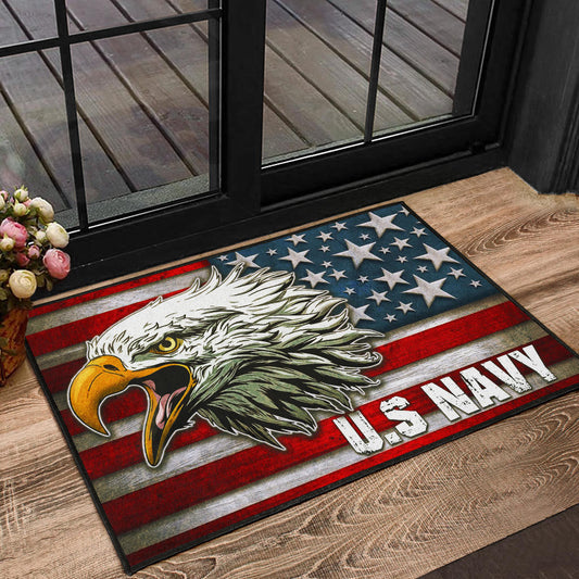 US Independence Day U.S Navy Eagle On American Flag Door Mat Home Decor