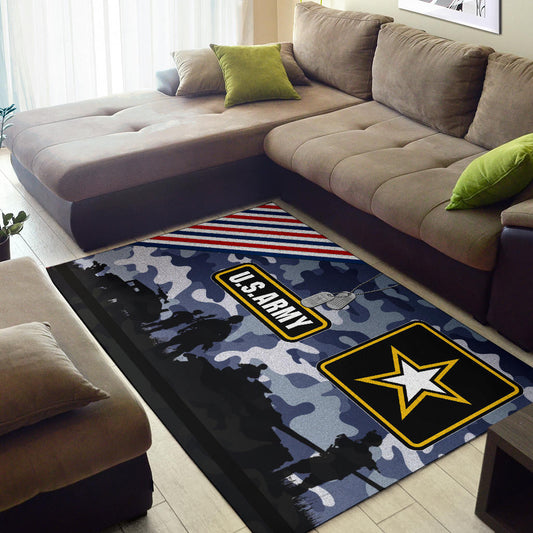 US Independence Day US Army Silhouette Star Tags Area Rug Home Decor