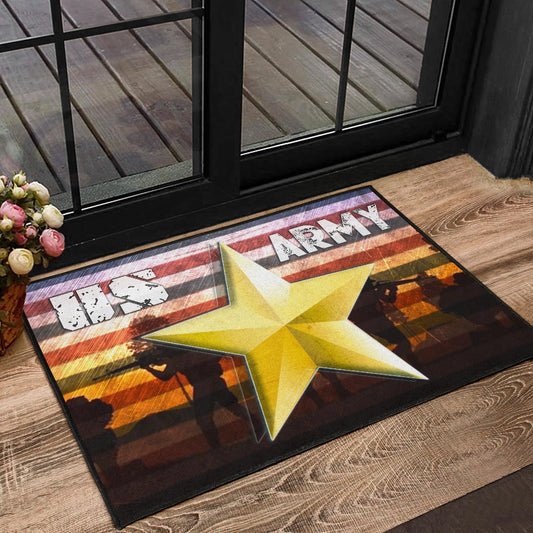 US Independence Day US Army In War Silhouette Yellow Star Door Mat Home Decor