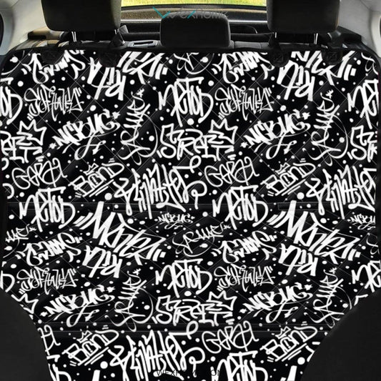 White And Black Graffiti Doodle Text Print Pet Car Seat Cover