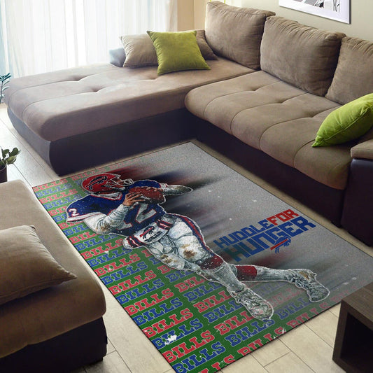 Buffalo Bills American Football Team Area Rug Jim Kelly Catching Ball And Running Huddle For Hunger Rugs Home Decor
