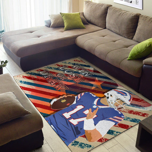 Buffalo Bills American Football Team Area Rug Player 17 Attack Rugby Ball Funny Quote Win Lose Or Draw Rugs Home Decor