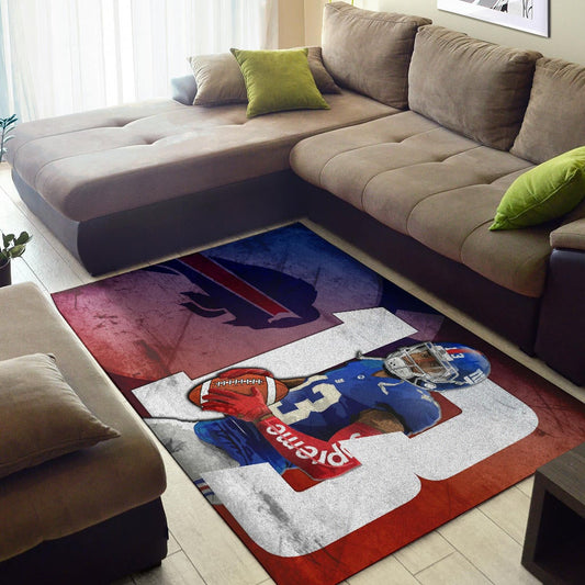 Buffalo Bills American Football Team Area Rug Micah Hyde 23 Smiling Buffalo On Rugby Yard Rugs Home Decor