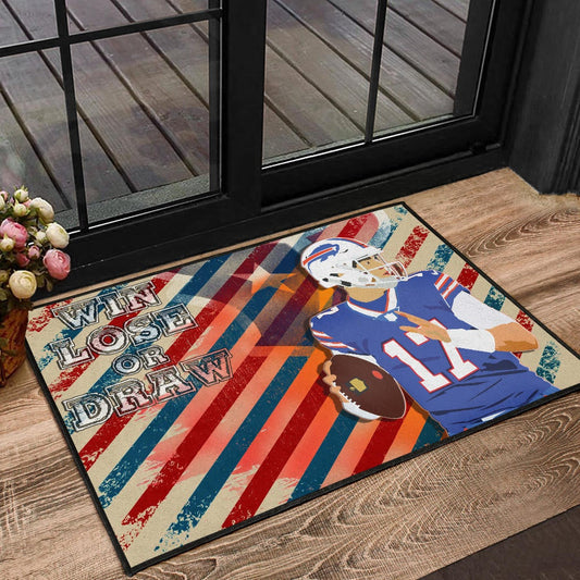 Buffalo Bills American Football Team Door Mat Player 17 Attack Rugby Ball Funny Quote Win Lose Or Draw Door Mat Home Decor