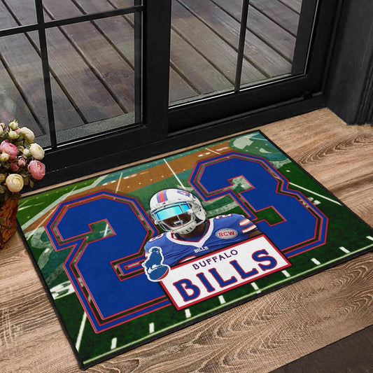 Buffalo Bills American Football Team Door Mat Micah Hyde 23 Smiling Buffalo On Rugby Yard Door Mat Home Decor