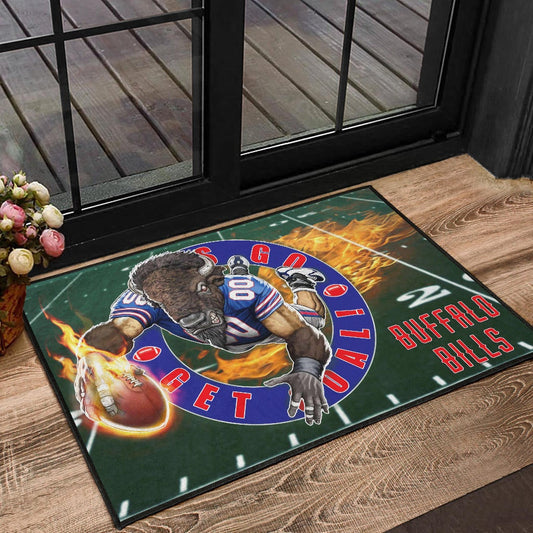 Buffalo Bills American Football Team Door Mat Player With Buffalo Head Holding Flaming Rugby Door Mat Home Decor