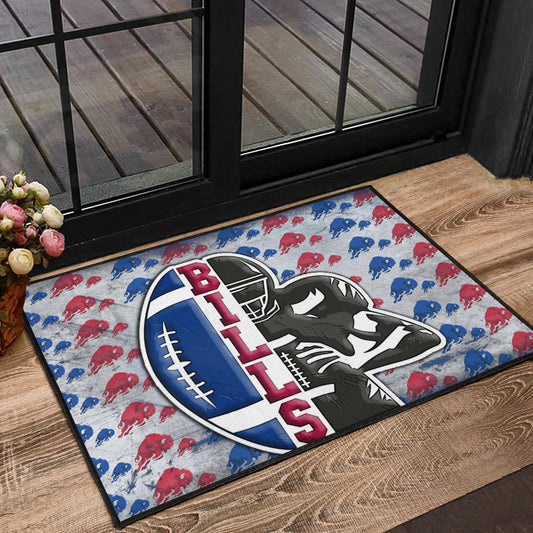 Buffalo Bills American Football Team Door Mat Human Shield With Rugby Ball Buffalo Silhouette Patterns Door Mat Home Decor