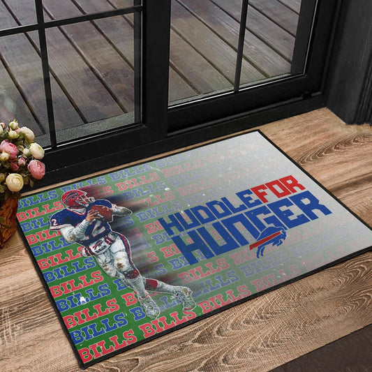 Buffalo Bills American Football Team Door Mat Jim Kelly Catching Ball And Running Huddle For Hunger Door Mat Home Decor