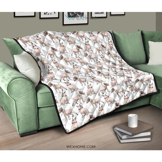 Bull Terrier Pattern Print Design 02 Premium Quilt