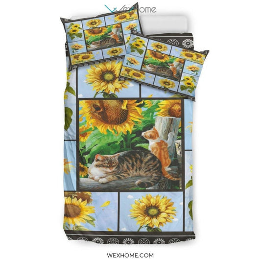 Cat & Sunflower Bedding - Duvet Cover And Pillowcase Set - Unique Design Amazing Gift