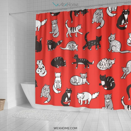 Cat Pattern Shower Curtain Unique Design Amazing Gift W1204