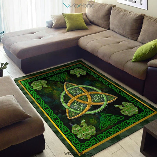 Celtic Knots Irish St Patrick's Day With Green Three Leaved Shamrock Nursery Area Rug