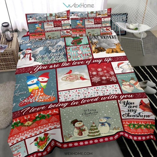 Christmas Snowman Bedding - Duvet Cover And Pillowcase Set - Unique Design Amazing Gift